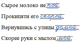 Слова для справок: домой, скорей, пей, мой.