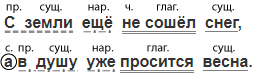 (С)земли ещё (не)сош..л снег, а в душу уже просится весна.4 Если вы когда-нибудь выздоравливали2 (от)т..жёлой болезн.., то вам извес(?)но блаженное состояние, когда замира..шь (от)смутных предчу(?)ствий3 и улыбаешься (без)всякой причины. По-видимому, такое же состояние пережива..т теперь и пр..рода.