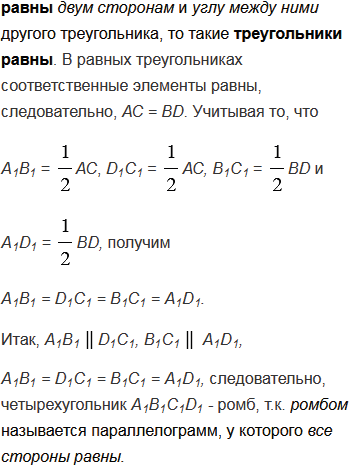 Докажите, что четырехугольник - ромб, если его вершинами являются середины сторон: