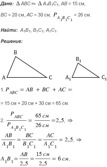 Стороны данного треугольника равны 15 см, 20 см и 30 см. Найдите стороны треугольника, подобного данному, если его периметр равен 26 см.