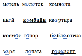 | метель | молоток | комната |
