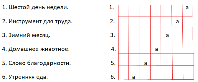 Прочитайте. Впишите в пустые клетки слова, соответствующие данным значениям.