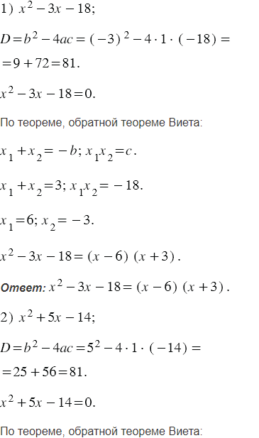 Разложите на линейные множители трехчлен:
