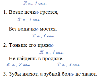 • Укажите склонение и падеж имён существительных. Впишите пропущенные окончания и объясните их написание.