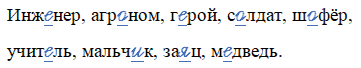 Инж_нер, агр_ном, г_рой, с_лдат, ш_фёр, учит_ль, мальч_к, за_ц, м_дведь.