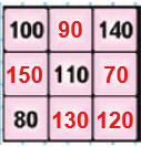 140 + 110 + 80 = 330 - сумма в каждой строке, в каждом столбце и из угла в угол.