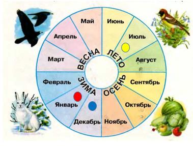 2. Назовите зимние, весенние, летние, осенние месяцы.