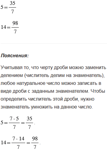 Представьте в виде дроби со знаменателем 7 числа 5 и 14.