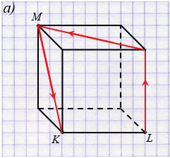 б) который пересекает все горизонтальные ребра куба, кроме ребра KL.