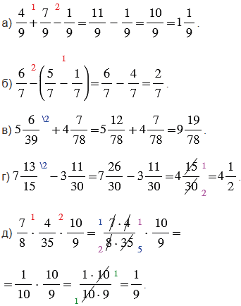 2) чтобы найти разность смешанных чисел, надо: дробные части этих чисел привести к наименьшему общему знаменателю, используя основное свойство дроби; отдельно вычесть целые и отдельно дробные части и результаты сложить; при необходимости сократить дробь дробную часть (разделить числитель и знаменатель дроби на их наибольший общий делитель);