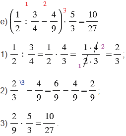 Красные числа, стоящие сверху над действиями, показывают в каком порядке нужно выполнять действия.