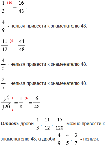 Можно ли дроби привести к знаменателю 48?