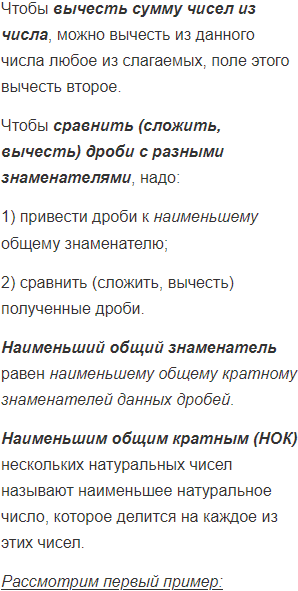 2) сравнить (сложить, вычесть) полученные дроби.