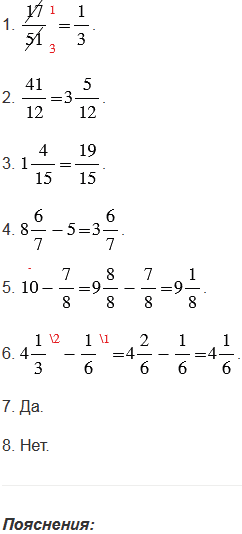 8. Разность пяти целых трех восьмых и четырех целых трех седьмых больше единицы.
