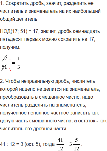 1. Сократите дробь семнадцать пятьдесят первых.