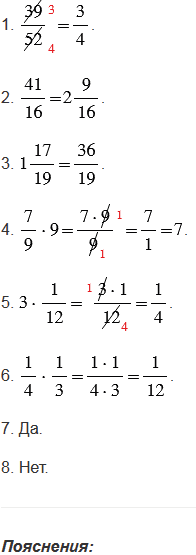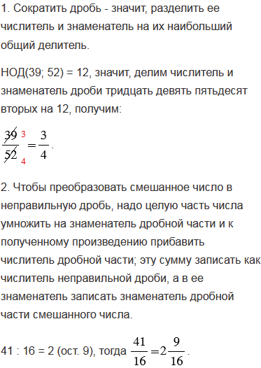 1. Сократите дробь тридцать девять пятьдесят вторых.