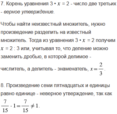 8. Произведение семи пятнадцатых и единицы равно единице.