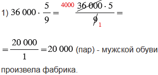 1) Фабрика произвела 36 000 пар женской и мужской обуви, мужская обувь составляет
