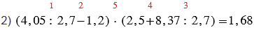 2) (4,05 : 2,7 - 1,2) • (2,5 + 8,37 : 2,7).