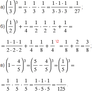 Если выражение содержит действие в степени, то сначала нужно выполнить действие под степенью, затем возвести полученный результат в степень и выполнить оставшиеся действия.