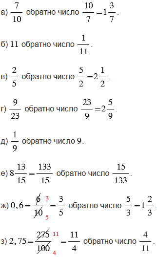 Если обратное число - неправильная дробь (числитель больше знаменателя), ее нужно преобразовать в смешанное число. Чтобы неправильную дробь, числитель которой нацело не делится на знаменатель, преобразовать в смешанное число, надо числитель разделить на знаменатель; полученное неполное частное записать как целую часть смешанного числа, а остаток - как числитель его дробной части.