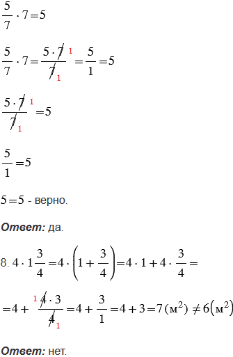 8. Площадь прямоугольника со сторонами четыре метра и одна целая три четвертых метра равна шести квадратным метрам.