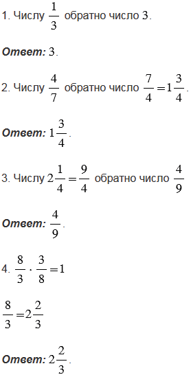Если обратное число - неправильная дробь (числитель больше знаменателя), ее нужно преобразовать в смешанное число. Чтобы неправильную дробь, числитель которой нацело не делится на знаменатель, преобразовать в смешанное число, надо числитель разделить на знаменатель; полученное неполное частное записать как целую часть смешанного числа, а остаток - как числитель его дробной части.