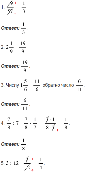 1. Сократите дробь девятнадцать пятьдесят седьмых.