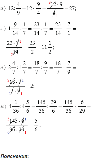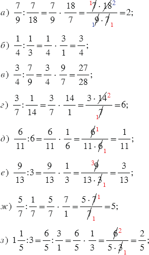 При выполнении умножения дробей, чтобы вычисления были проще, не надо перемножать сразу, лучше сделать это после сокращения. Сократить дробь - значит, разделить ее числитель и знаменатель на одно и то же число (наибольший общий делитель).