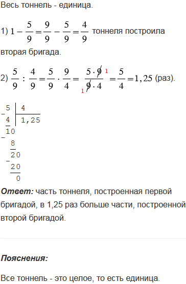 Две проходческие бригады строили тоннель, двигаясь навстречу друг другу. Первая бригада построила всего тоннеля, а вторая - остальную часть. Во сколько раз часть тоннеля, построенная первой бригадой, больше части, построенной второй бригадой?