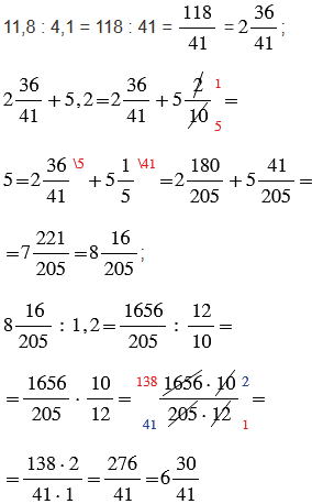 г) 0,5 • 20 =10 10 + 2,3 = 12,3 12,3 : 4,1 = 3 3 + 5,2 = 8,2 8,2 : 0,2 = 41 |