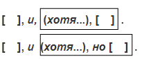 В сложных предложениях с сочинительной и подчинительной связью могут стоять сочинительный и подчинительный союзы. Запятая между ними ставится тогда, когда после подчинительного предложения нет второй части двойного союза (то, так) или союза но, например: По сумрачному небу носились густые тучи, и, хотя шёл только третий час дня, было темно. (Ср.: По Сумрачному небу носились густые тучи, и хотя шёл только третий час дня, но было темно. (Н. Никитин) В последнем случае между союзами и и хотя запятая не ставится, так как после уступительного придаточного стоит союз но.