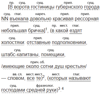В ворота гостиницы губернского города NN в..ехала довол..но красивая рессорная (не)большая бричка в какой ездят холостяки: отставные подполковники2 штабс-капитаны помещики имеющие около сотни2 душ крест..ян словом все те которых называют господами средней руки.4