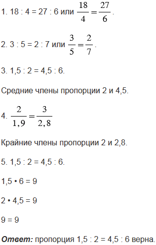 3. Запишите средние члены пропорции 1,5 : 2 = 4,5 : 6.
