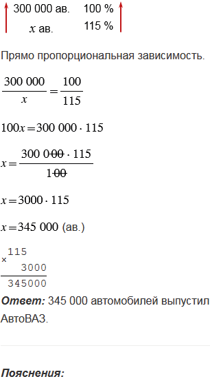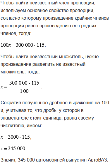 На АвтоВАЗе было запланировано в год выпустить 300 000 автомобилей, однако план был выполнен на 115%. Сколько автомобилей выпустил АвтоВАЗ?