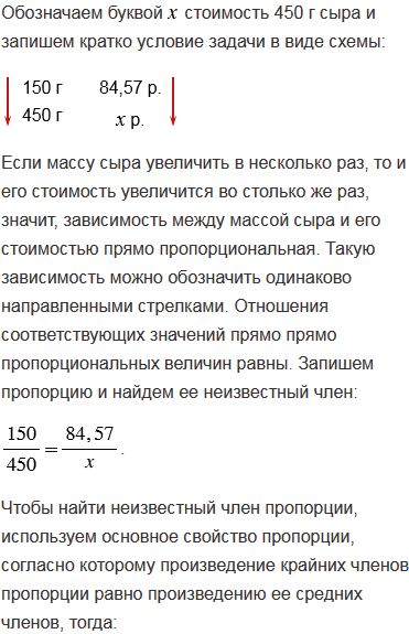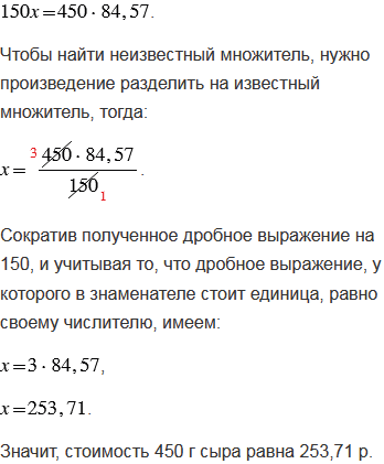 На ценнике указана стоимость 150 г сыра - 84,57 р. Чему равна стоимость 450 г этого же сыра?