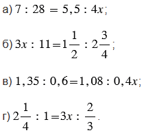 Чтобы найти неизвестный член пропорции, используем основное свойство пропорции: