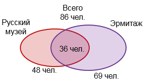 2) 69 - 36 = 33 (чел.) - хотят посетить только Эрмитаж.