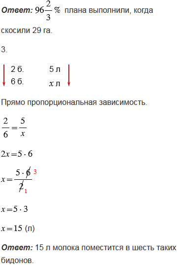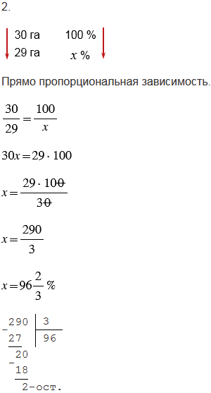 2. По плану должны были скосить рожь на тридцати гектарах. Сколько процентов плана выполнили, когда скосили двадцать девять гектаров?
