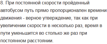 8. При постоянной скорости пройденный автобусом путь прямо пропорционален времени движения.