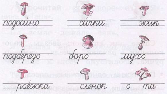 Задание 2. Прочитай. Впиши в предложения пропущенные слова - названия грибов.