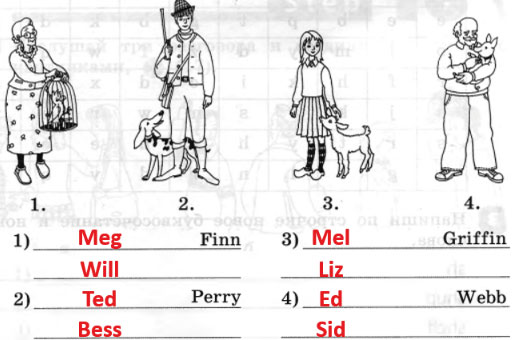 4. Придумай и напиши имена этих людей и клички их питомцев.