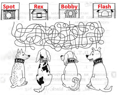 4. Напиши имена собак на их будках.