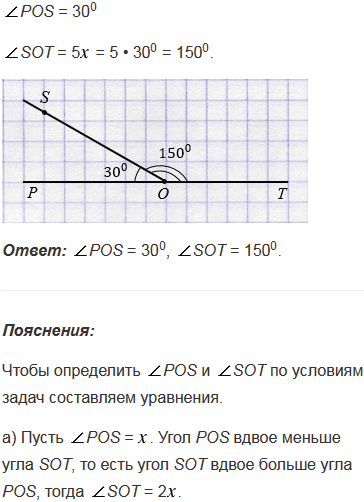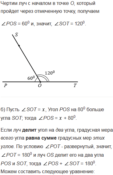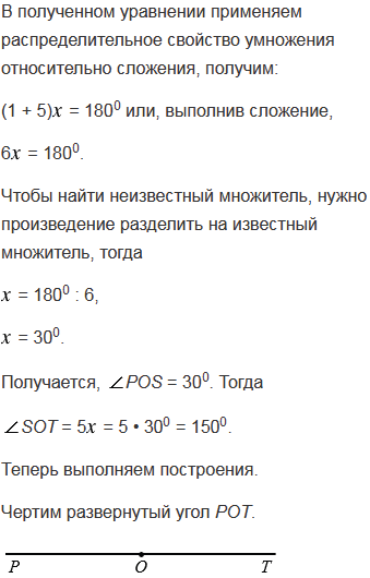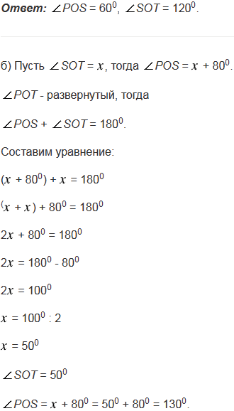 Постройте развернутый угол РОТ и проведите луч ОS. Чему равны углы РОS и SOT, если: