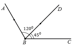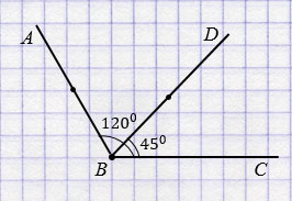 Начертите углы АВС = 1200 и DВС = 450 с общей стороной ВС так, чтобы они лежали по одну сторону от нее. Найдите угол АВD.