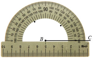 Чтобы построить углы АВС = 1200 и DВС = 450, чертим луч ВС и прикладываем центр транспортира к точке В, так, чтобы луч ВС прошел через нулевое деление на внутренней шкале транспортира, и находим на внутренней шкале транспортира значения 1200 и 450, ставим напротив них точки.