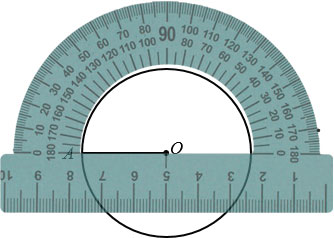Построим угол, равный 1710. Прикладываем центр транспортира к центру круга так, чтобы радиус прошел через нулевое деление на внешней шкале транспортира. Находим на внешней шкале транспортира значение 1710, ставим напротив него точку.