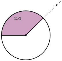 Чертим луч с началом в центре круга, который пройдет через отмеченную точку, получаем угол, равный 135,90.