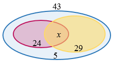 По данным в условии задачи схематично изображаем соотношение между множествами и составляем уравнение.