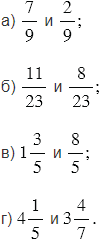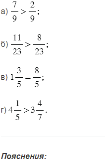 Из двух дробей с одинаковыми знаменателями больше та, у которой числитель больше, и меньше та, у которой числитель меньше.